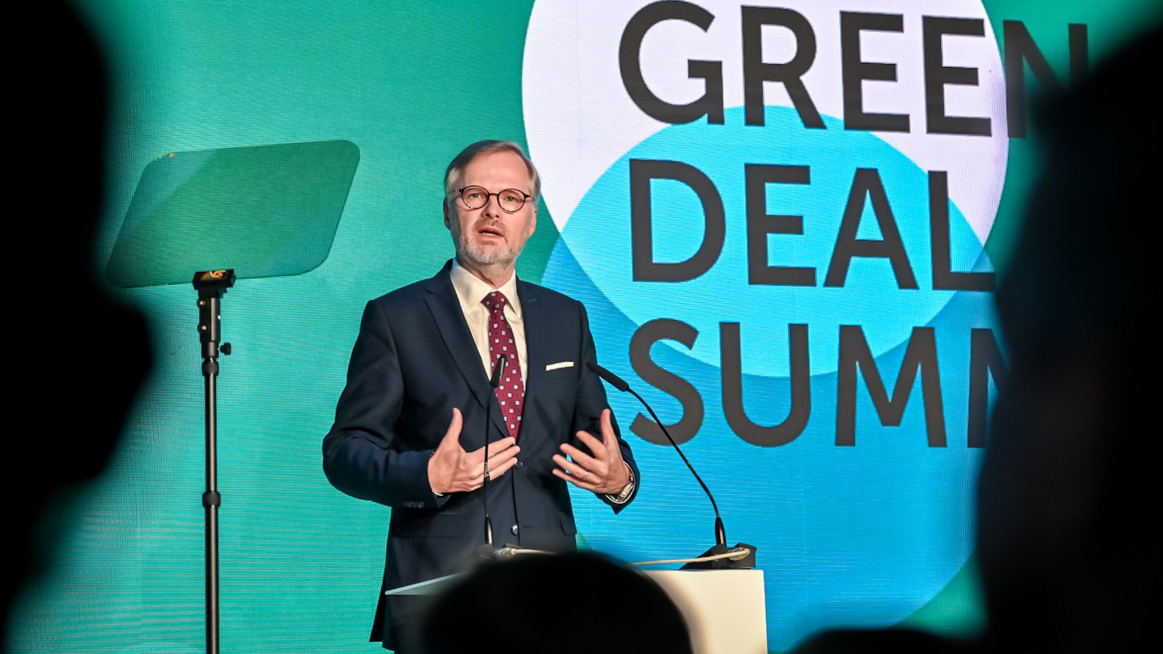 „Vy všichni hledáte odpověď na otázku, jak tuto zásadní proměnu evropské ekonomiky co nejlépe využít, jak ji co nejlépe využít nejenom v zájmu naší přírody, ale jak ji co nejlépe využít také v zájmu dlouhodobé prosperity,“ řekl premiér Fiala .