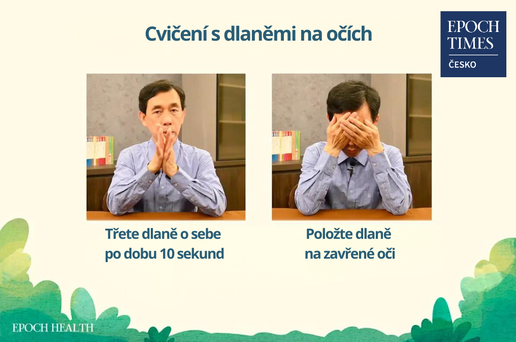 Krok 1: Zavřete obě oči a třete dlaněmi o sebe, aby se zahřály.