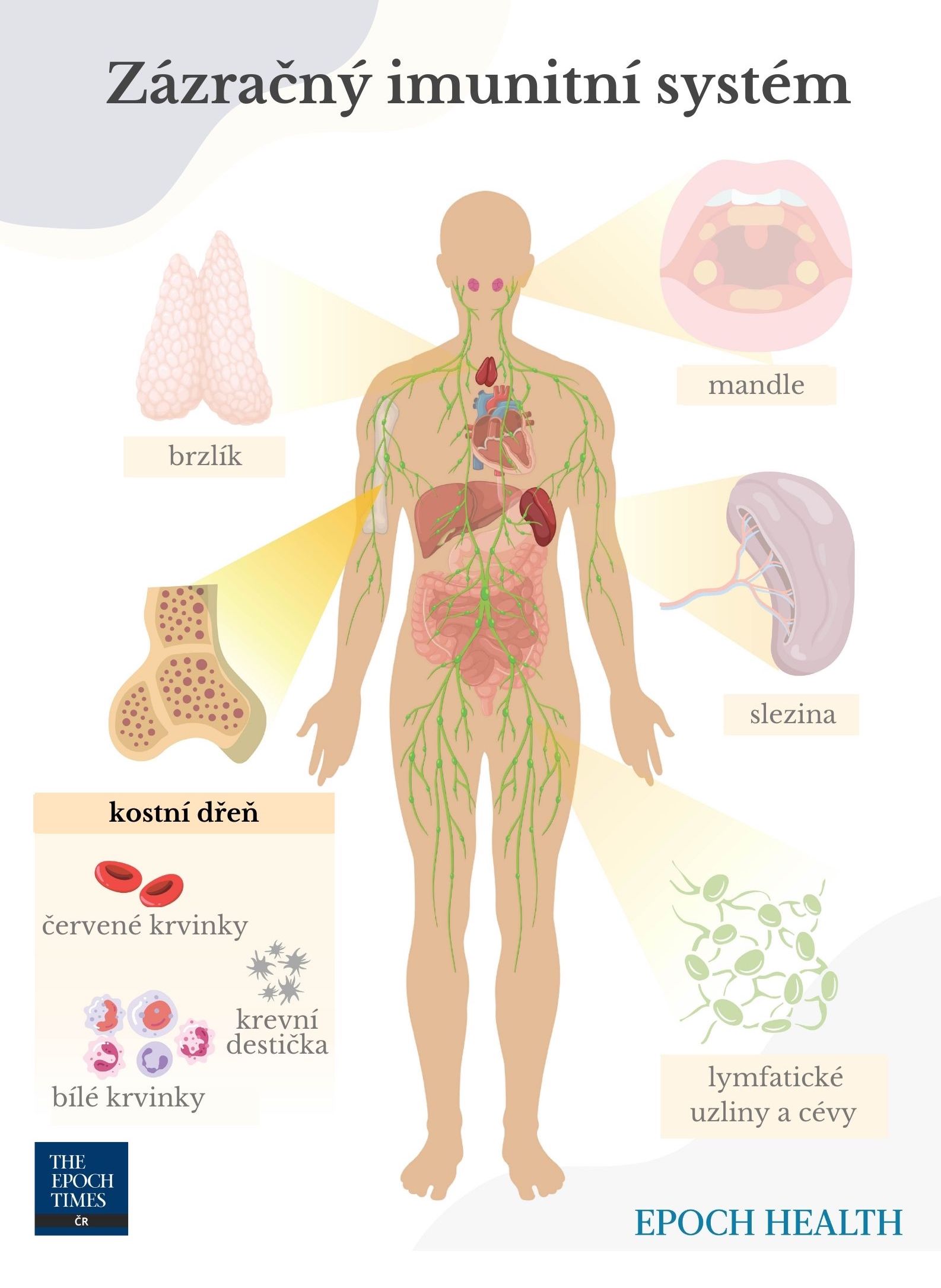 Z kostní dřeně se uvolňuje celá řada silných imunitních buněk, včetně neutrofilů, eozinofilů, hlavních buněk, bazofilů, monocytů, přirozených zabíječů a B-lymfocytů a T-lymfocytů. Každá buňka je jako voják, který má specializované schopnosti v boji proti virům, bakteriím a rakovinným buňkám.