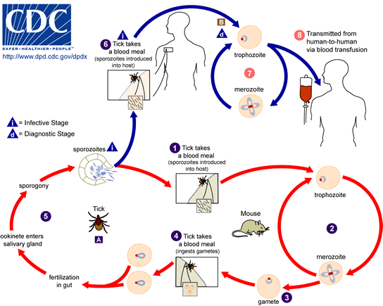 Životní cyklus prvoka rodu Babesie. (s laskavým svolením kliste.cz)