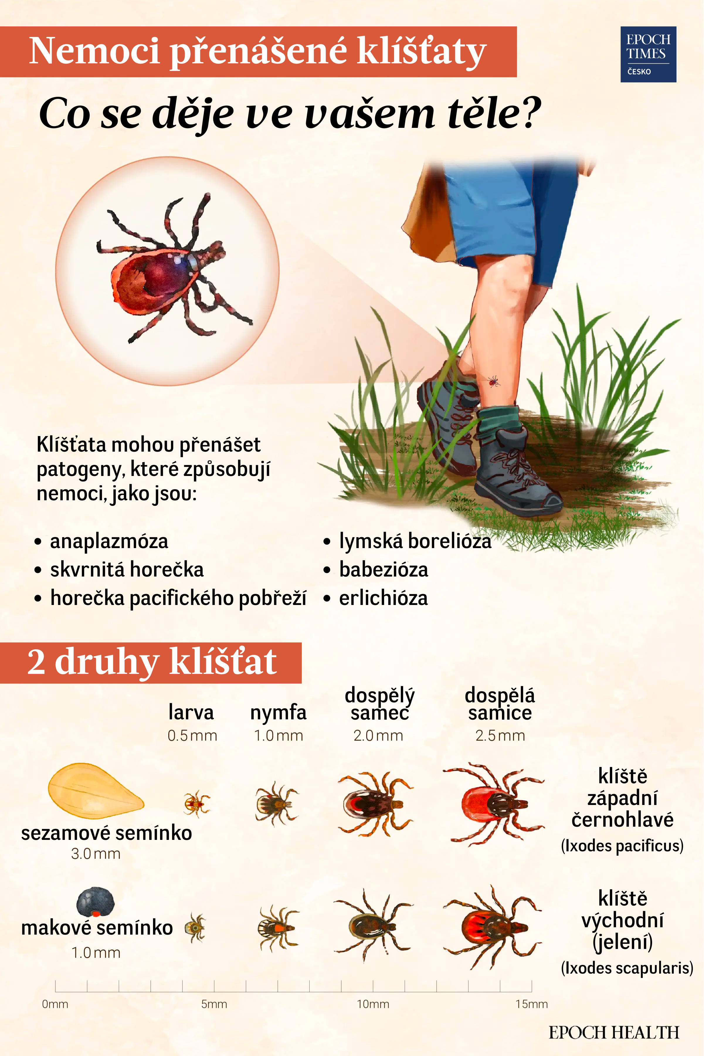 Klíšťata infikovaná různými patogeny mohou svým kousnutím způsobit onemocnění. (Ilustrace: The Epoch Times, Shutterstock)