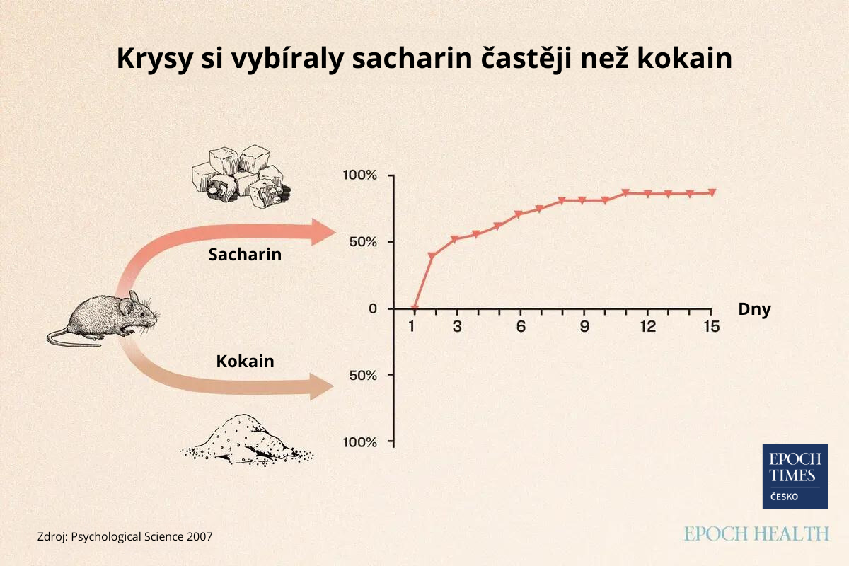 Ačkoli je kokain vysoce návykový, 94 % krys si vybralo odměnu v podobě sacharinu, což ukazuje na sílu návykového potenciálu intenzivní sladkosti. Jejich volba se udržela i po zvýšení dávky kokainu.