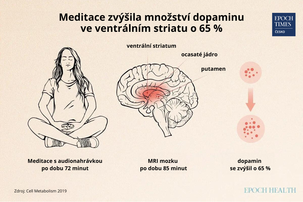 V roce 2013 vědci pod vedením Michaela Hagertyho z Kalifornské univerzity v Davisu prokázali, že meditace dokáže aktivovat náš dopaminový systém odměny bez přítomnosti jakéhokoli léku nebo příjemného vnějšího podnětu. Proto může meditace pomáhat lidem zvládat stres a abstinenční příznaky závislosti.