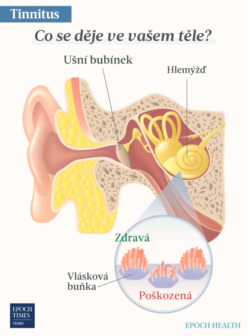 Podle odborníků může poškození těchto vláskových buněk – akustickým traumatem, alergií, léky nebo poraněním hlavy – způsobit, že mozkové obvody nepřijímají očekávané signály. To vede k abnormální nervové aktivitě a subjektivnímu vnímání zvuků, tedy tinnitu.