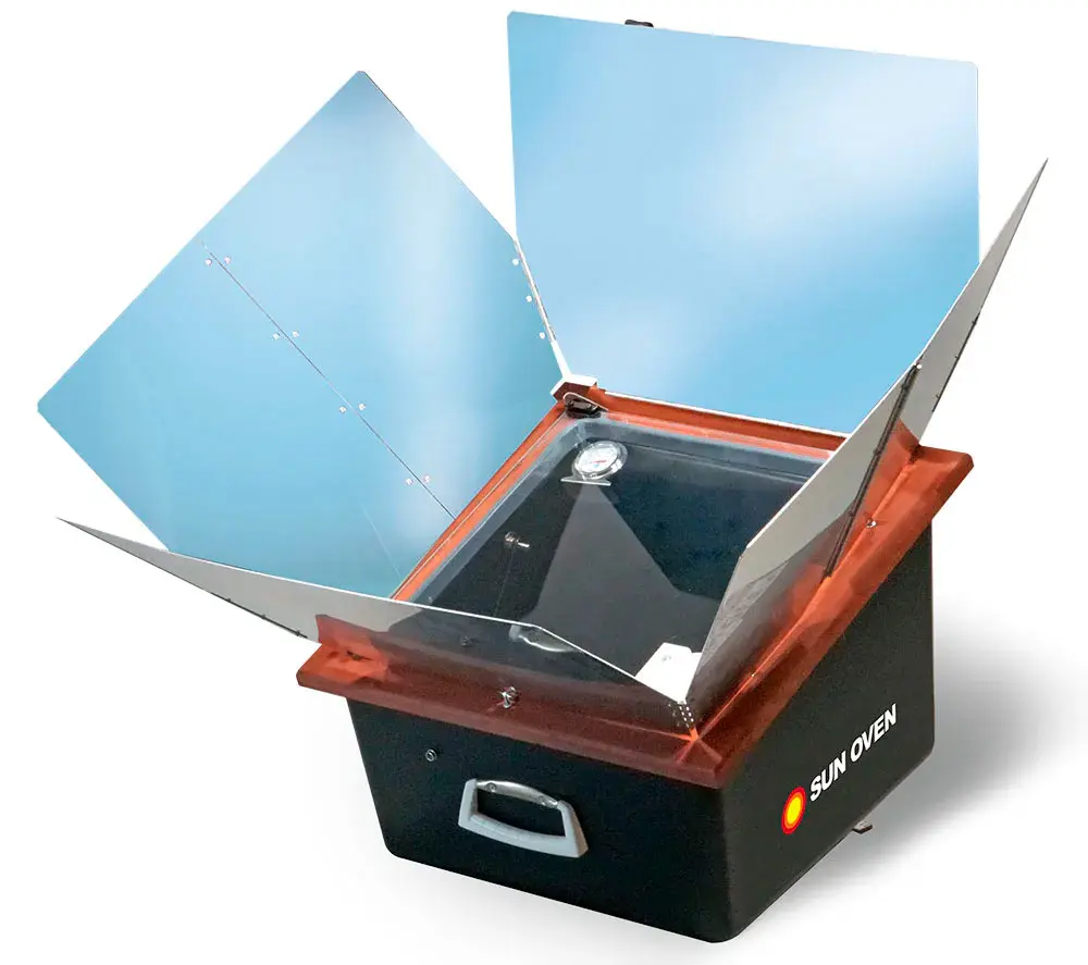 Jonathan zase doporučuje používat solární troubu. Tato jednoduchá zařízení vypadají podobně jako krabice. Po otevření se objeví reflexní panely, které shromažďují sluneční paprsky a vytvářejí teplo potřebné pro pečení, sušení, sterilizaci nádobí nebo vaření bez potřeby paliva. Lze je dokonce použít k sušení oblečení, dezinfekci vody, sušení podmáčené elektroniky, sušení bylin a čehokoli, co vyžaduje kompaktní zdroj tepla.