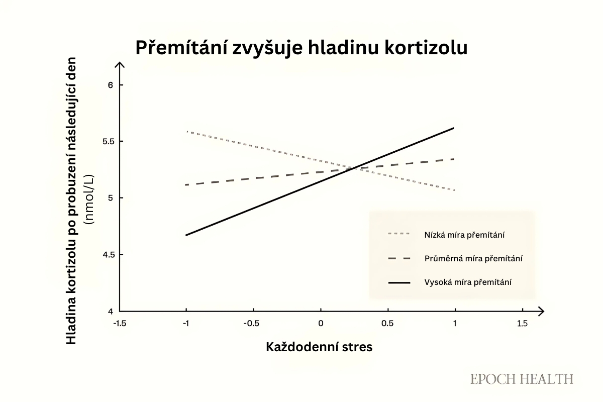 Podle studie z roku 2019 souvisí nadměrné přemítání s kratší dobou spánku a výrazně vyššími hladinami kortizolu po probuzení.
