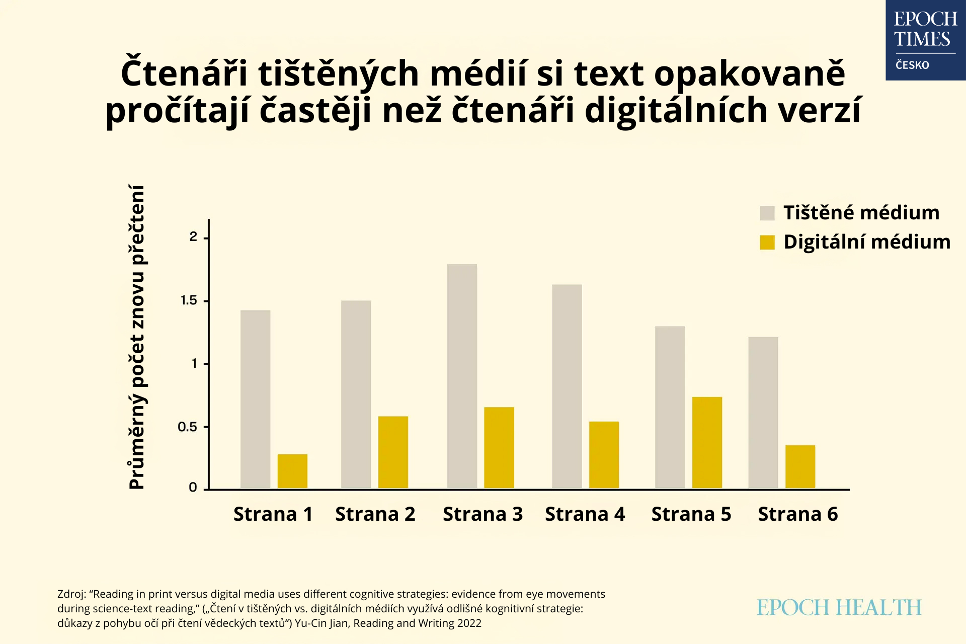 Tištěný text studenti znovu procházeli častěji než ti, kteří četli digitální verzi – a to na všech šesti stránkách vědeckého článku. (Epoch Times)