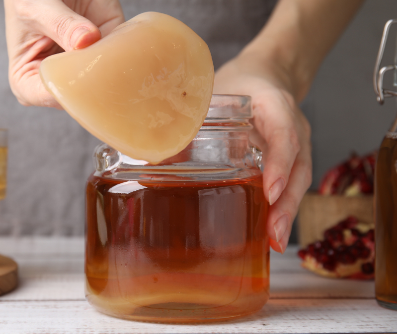 S postupujícím kvašením si můžete všimnout, že SCOBY houstne nebo se začíná oddělovat – což je známka toho, že vzniká nová kultura. To je dobré znamení! Novou SCOBY můžete kompostovat nebo darovat někomu, kdo se chce do výroby také pustit.