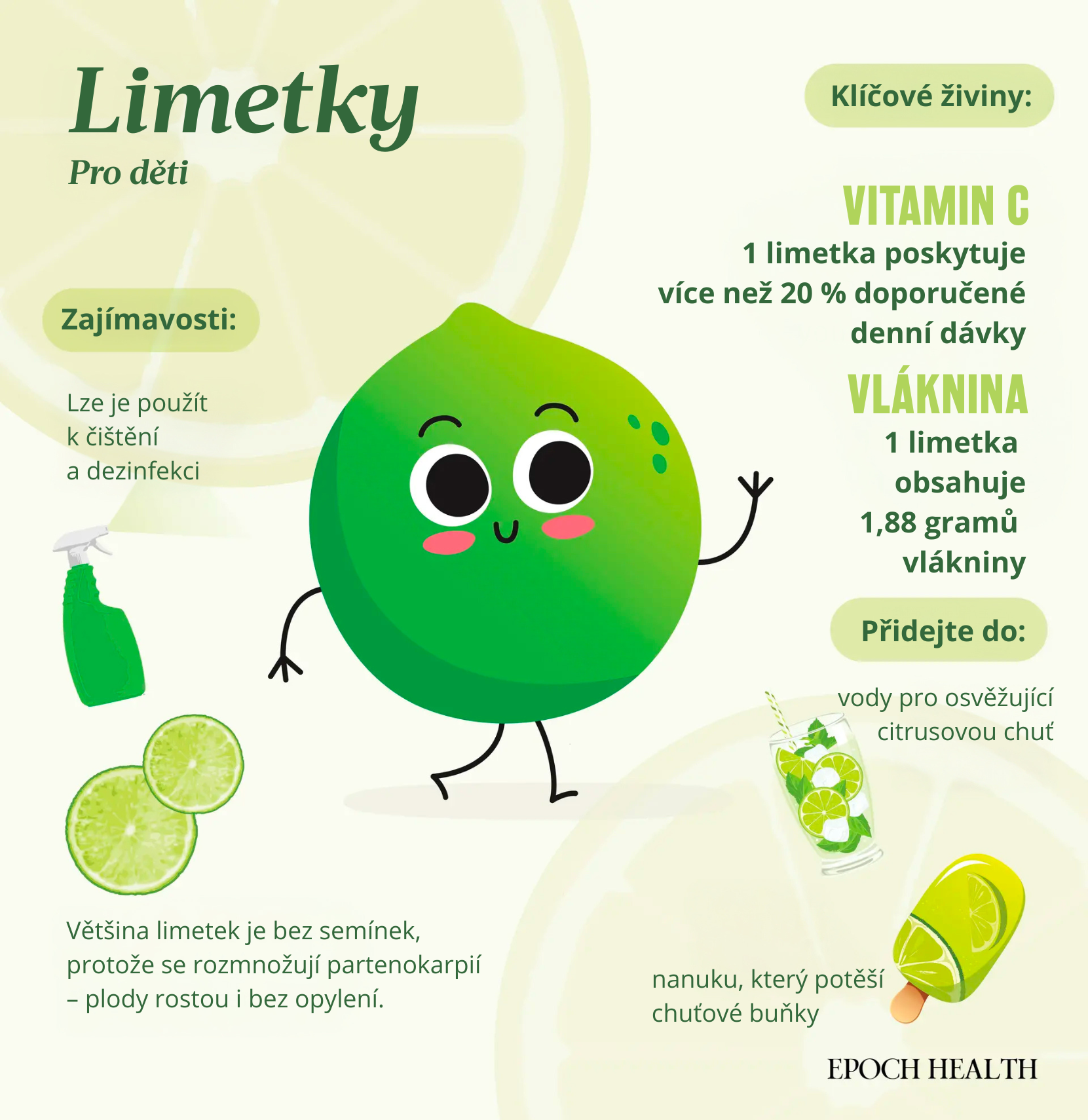 - Voda: Přidejte pár kapek limetky do sklenice vody – dodá chuť a pomůže dětem s hydratací.
