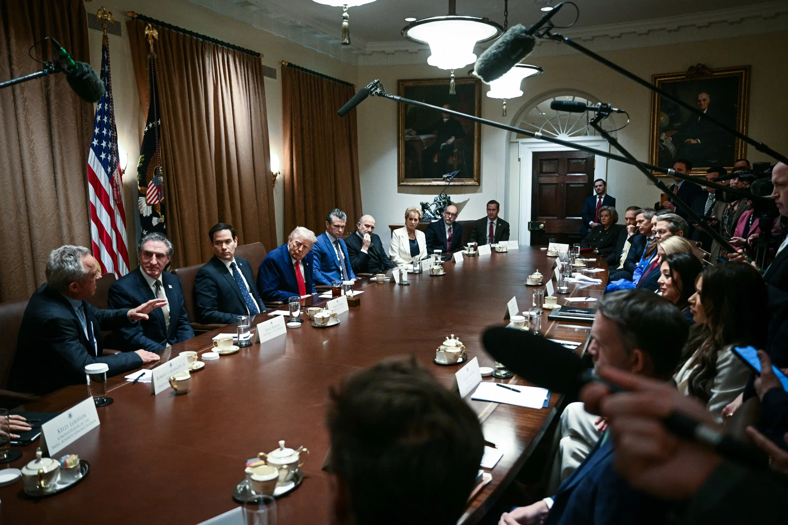 Lidé čekají na nástup do policejního autobusu během stávky svolané podniky veřejné dopravy na protest proti vydírání a požadavku větší bezpečnosti v Limě v Peru 10. dubna 2025. Ernesto Benavides/AFP via Getty ImagesPohled na přístav Baltimore 10. dubna 2025. Jim Watson/AFP prostřednictvím Getty ImagesVrtulník hasí vodou lesní požár na ostrově Bute u skotského Colintraive 10. dubna 2025. Jeff J. Mitchell/Getty ImagesHlavní tanzanský opoziční vůdce Tundu Lissu gestikuluje u soudu v Dar es Salaamu v Tanzanii 10. dubna 2025. Lissu, vůdce strany Chadema, byl 10. dubna obviněn z velezrady, den poté, co byl zadržen po shromáždění na jihu země. Strana obvinila vládu prezidenta Samia Suluhu Hassana z používání represivních taktik k potírání politických oponentů. Ericky Boniphace/AFP via Getty ImagesCelkový pohled na vodu procházející pěti stavidly přehrady Vaal do řeky Vaal v Deneysville v Jihoafrické republice 10. dubna 2025. Phill Magakoe/AFP via Getty ImagesStádo ovcí se pase u hořčičného pole na předměstí indického Šrínagaru 10. dubna 2025. (Tauseef Mustafa/AFP via Getty)Prodavačky masa vykřikují hesla během protestu svolaného Národní konfederací pracovníků v masném průmyslu, kteří požadují, aby vláda regulovala ceny masa, v La Pazu v Bolívii 10. dubna 2025. Aizar Raldes/AFP via Getty ImagesMost al-Džumhuríja přes řeku Tigris v centru Bagdádu během prašné bouře 10. dubna 2025. Ahmad Al-Rubaye/AFP via Getty ImagesMinistr zdravotnictví a sociálních služeb Robert F. Kennedy Jr. hovoří v době, kdy prezident Donald Trump předsedá zasedání vlády ve vládním sále Bílého domu ve Washingtonu 10. dubna 2025. Brendan Smialowski/AFP via Getty ImagesFasáda bývalé továrny na ponorky Valentin v německých Brémách 10. dubna 2025. Stavba továrny byla zahájena v roce 1943, ale v březnu 1945 byla zastavena poté, co ji zasáhlo bombardování. Většinu z 10 000-12 000 dělníků tvořili nuceně nasazení pracovníci, kteří byli umístěni v okolních táborech, včetně koncentračního tábora Brémy-Farge. Práce v bunkru probíhala nepřetržitě, vězni byli nuceni pracovat ve dvanáctihodinových směnách v nebezpečných podmínkách, což vedlo k vysoké úmrtnosti. Britové oblast obsadili v dubnu 1945. Dnes slouží bývalá továrna jako památník. Focke Strangmann/AFP via Getty ImagesPříznivci gabonského vojenského vůdce a prezidentského kandidáta Brice Oligui Nguemy tančí během předvolebního shromáždění v gabonském Libreville 10. dubna 2025 před prezidentskými volbami, které se mají konat 12. dubna. Nao Mukadi/AFP via Getty ImagesPříslušník vězeňské správy drží bezpečnostní bránu ve věznici ve Vendin-le-Vieil ve Francii 10. dubna 2025. Od července se tato věznice spolu s věznicí Alencon-Conde-sur-Sarthe brzy stane jedním ze dvou vězeňských center s vysokou ostrahou ve Francii, která jsou uzpůsobena pro vězně spojené s organizovaným zločinem. Francois Nascimbeni/AFP via Getty ImagesNafukovací velikonoční zajíček mává z pole v německém Werderu v Braniborsku 10. dubna 2025. Ralf Hirschberger/AFP via Getty ImagesKolemjdoucí používají deštníky v dešti v indickém Siliguri 10. dubna 2025. Ostatní části země zažily v posledních dnech vlnu veder. Diptendu Dutta/Middle East Images/AFP via Getty ImagesCelkový letecký pohled na Barossa Park během setkání s novináři před vůbec prvním zápasem australské fotbalové ligy v Barossa Parku v Lyndochu v Austrálii 10. dubna 2025. Morgan Hancock/AFL Photos/prostřednictvím Getty ImagesČáp bílý se vítá se svou družkou nedaleko německého Cleebronnu 10. dubna 2025. Thomas Kienzle/AFP /AFP via Getty Images