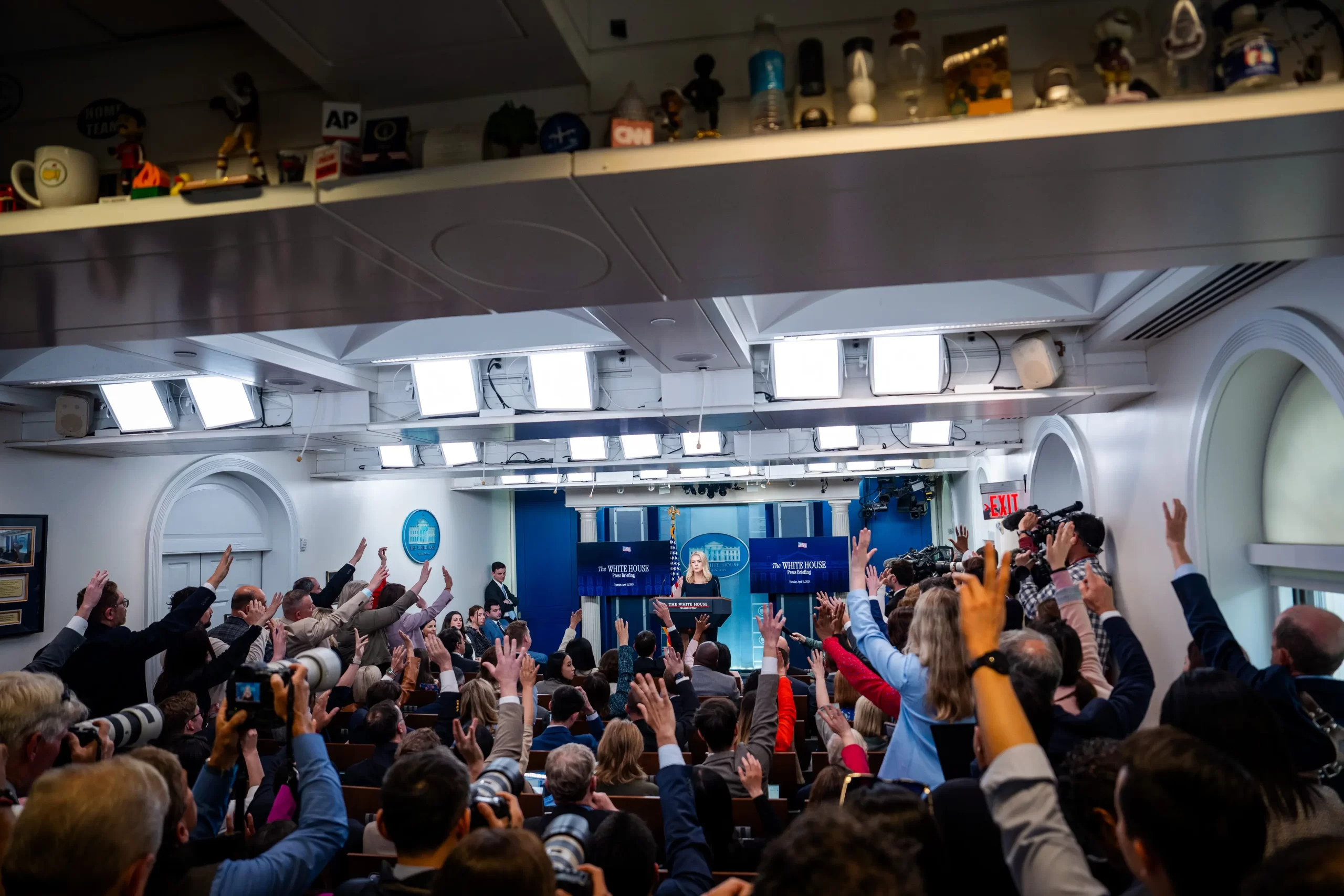 Tisková mluvčí Bílého domu Karoline Leavittová hovoří během tiskové konference v Bílém domě ve Washingtonu 15. dubna 2025. Madalina Vasiliu/The Epoch Times