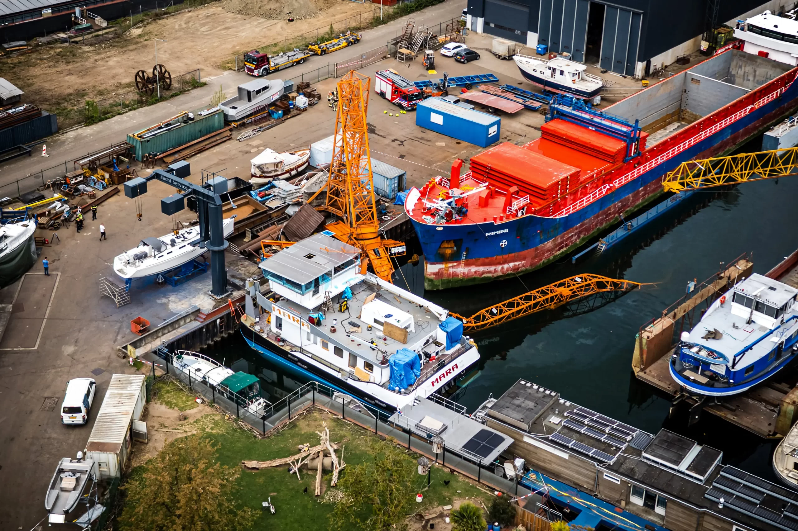 Poškozený jeřáb leží převrácený po nehodě, při které bylo 15. dubna 2025 v nizozemském Maasbrachtu zraněno několik lidí. Rob Engelaar/ANP/AFP via Getty Images