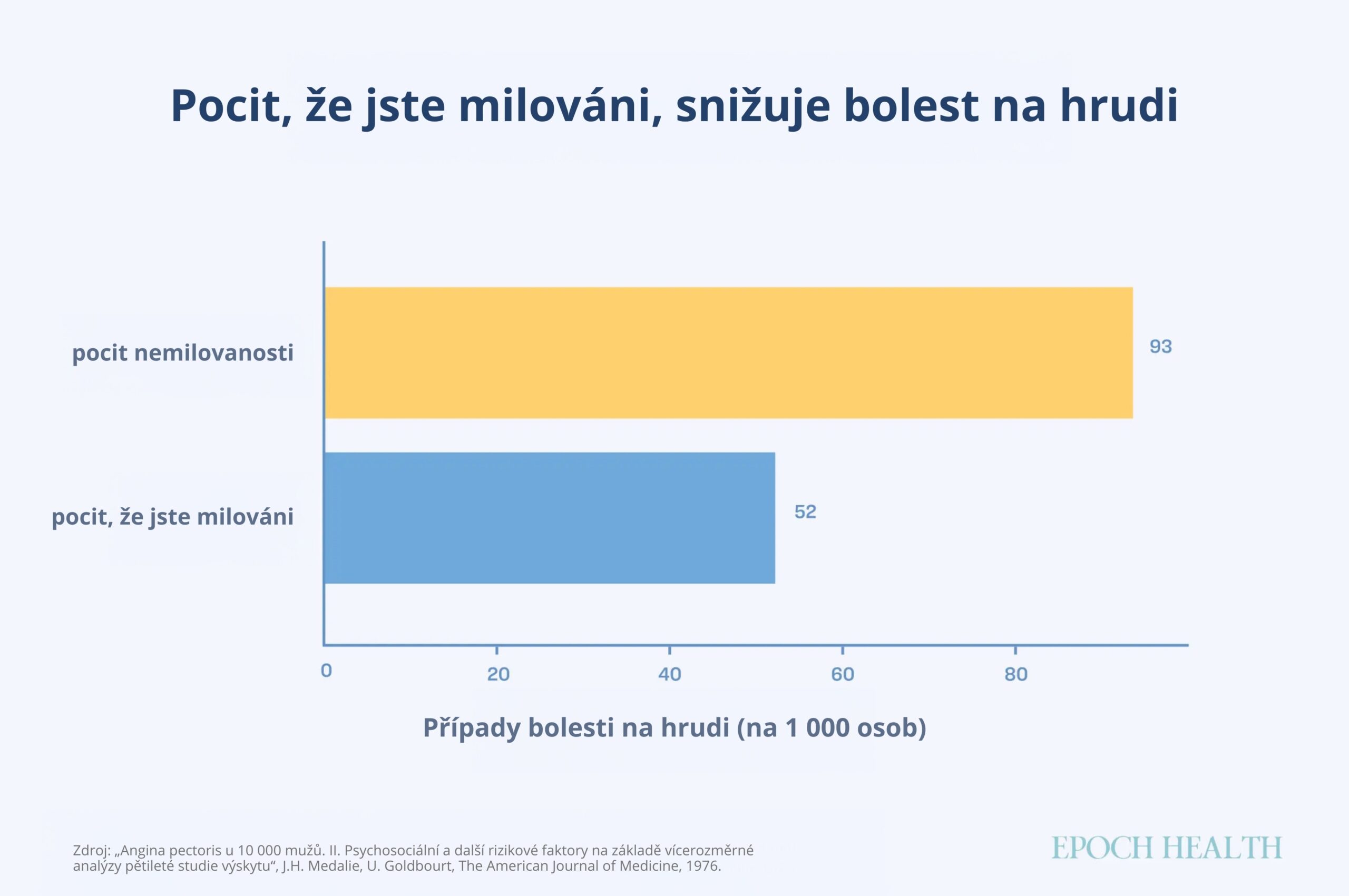 Studie, která položila 10 000 mužům otázku „Projevuje vám vaše manželka svou lásku?“, zjistila, že ti, kteří odpověděli ano, měli o 50 procent nižší výskyt anginy pectoris, tedy bolestí na hrudi. Tento pozitivní efekt se projevil i u mužů s rizikovými faktory, jako je vysoký cholesterol nebo cukrovka.