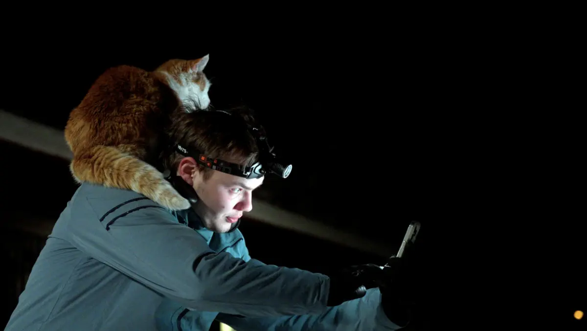 Bjorn Tore a táborová kočka připravují záběr pro projekt natáčení reklamy ve „Folktales“. (Magnolia Pictures)