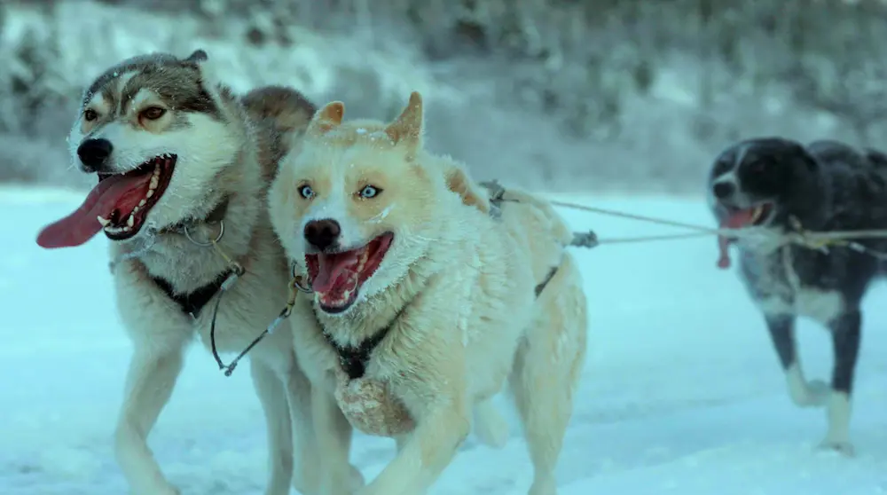 Rozjásaní saňoví psi dělají to, co milují, ve „Folktales“. (Magnolia Pictures)