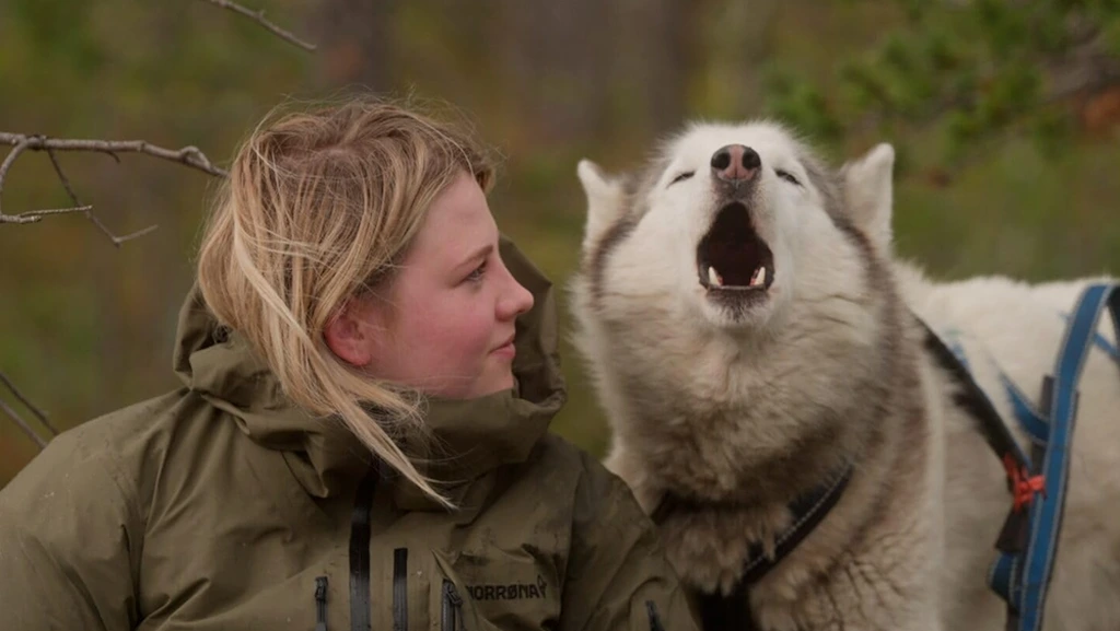 Hege Wik a její pes Sautso si spolu užívají pořádné „a-woo“ ve „Folktales“. (Magnolia Pictures)