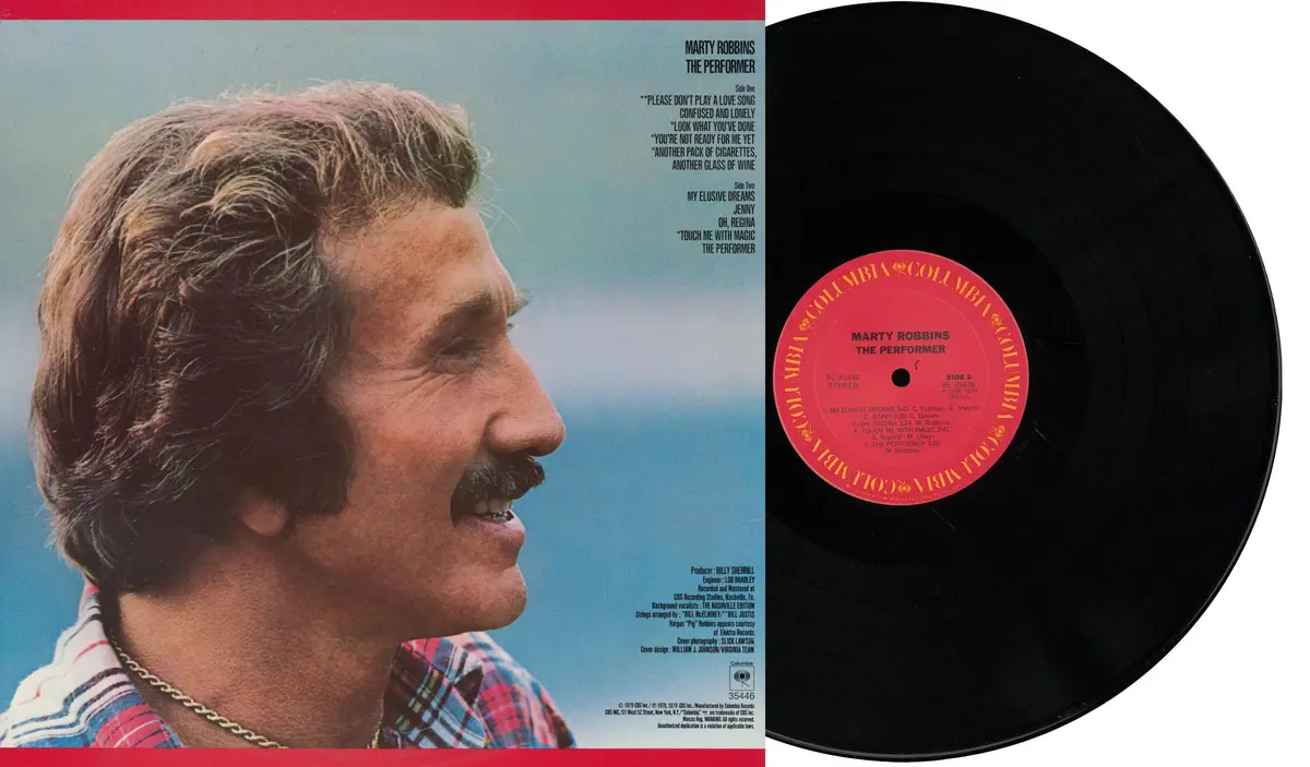 Zadní strana alba Martyho Robbinse „The Performer“ z roku 1979 s hitem „Touch Me With Magic“ od Stevea Bogarda. (Internet Archive / Public Domain)