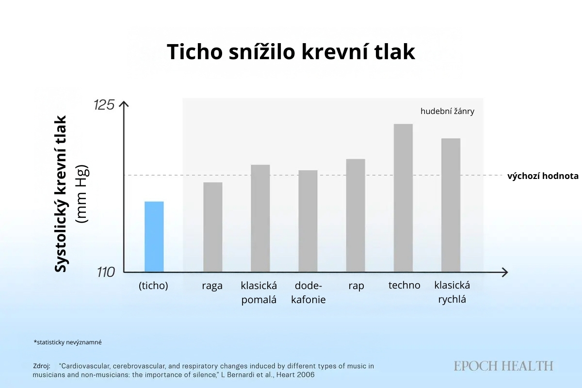 Ticho naopak, jak ukázala Bernardiho studie, snižuje tepovou frekvenci a krevní tlak. Podle Bernardiho může být dokonce užitečné při léčbě kardiovaskulárních onemocnění.