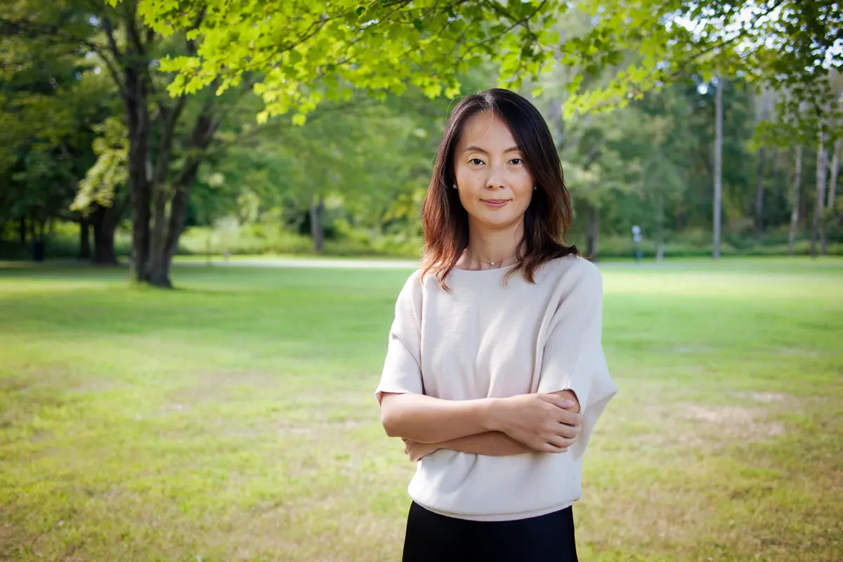 Praktikující Falun Gongu Gong Xiaoyan v Otisville ve státě New York, 31. srpna 2025. Její otec, rovněž praktikující, zemřel ve vězení v roce 2021. (Petr Šváb / Epoch Times)