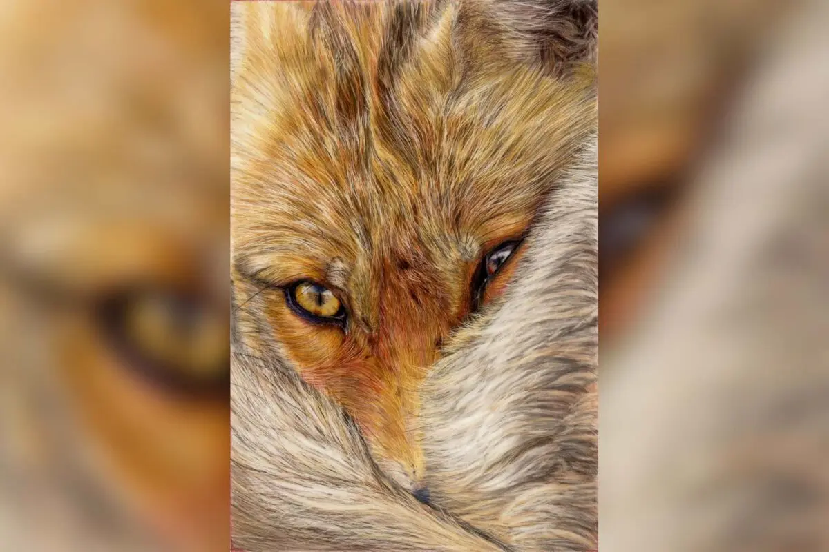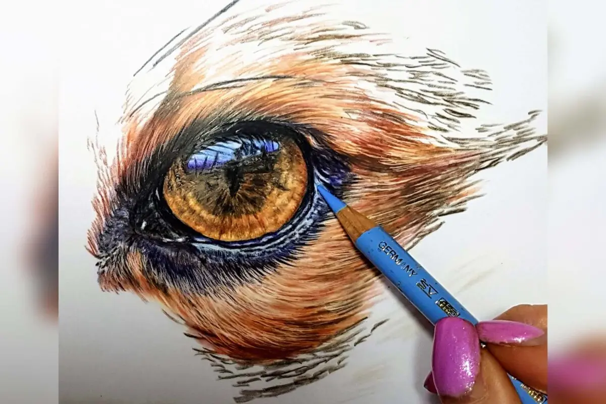 Lisa Watkinsová kreslí jemné chloupky kolem duhovky jednoho ze svých zvířecích portrétů. (S laskavým svolením Lisy Watkinsové)