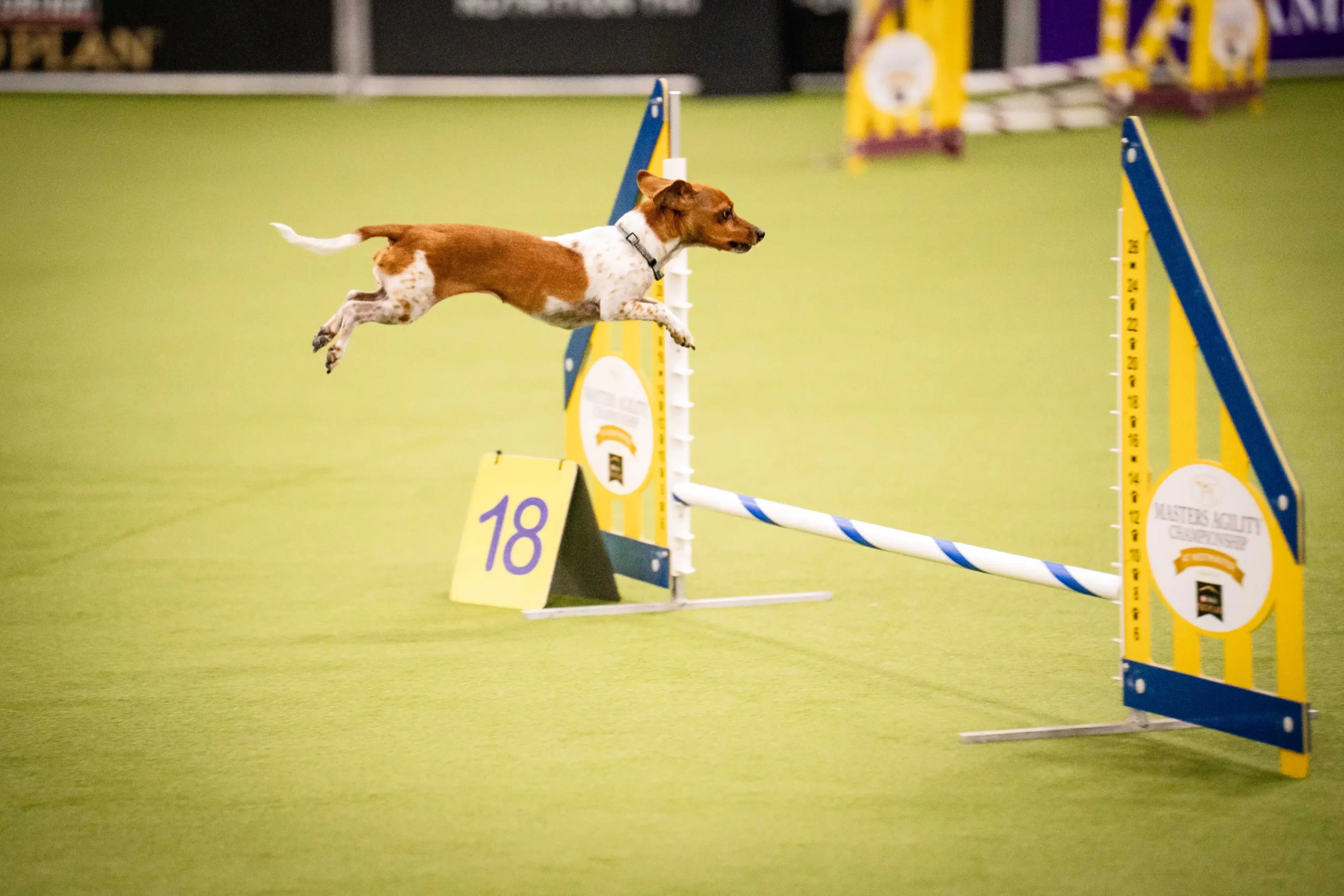 Pes soutěží v agility na 149. ročníku výstavy Westminster Kennel Club Dog Show v New Yorku, 8. února 2025. (Samira Bouaou / The Epoch Times)