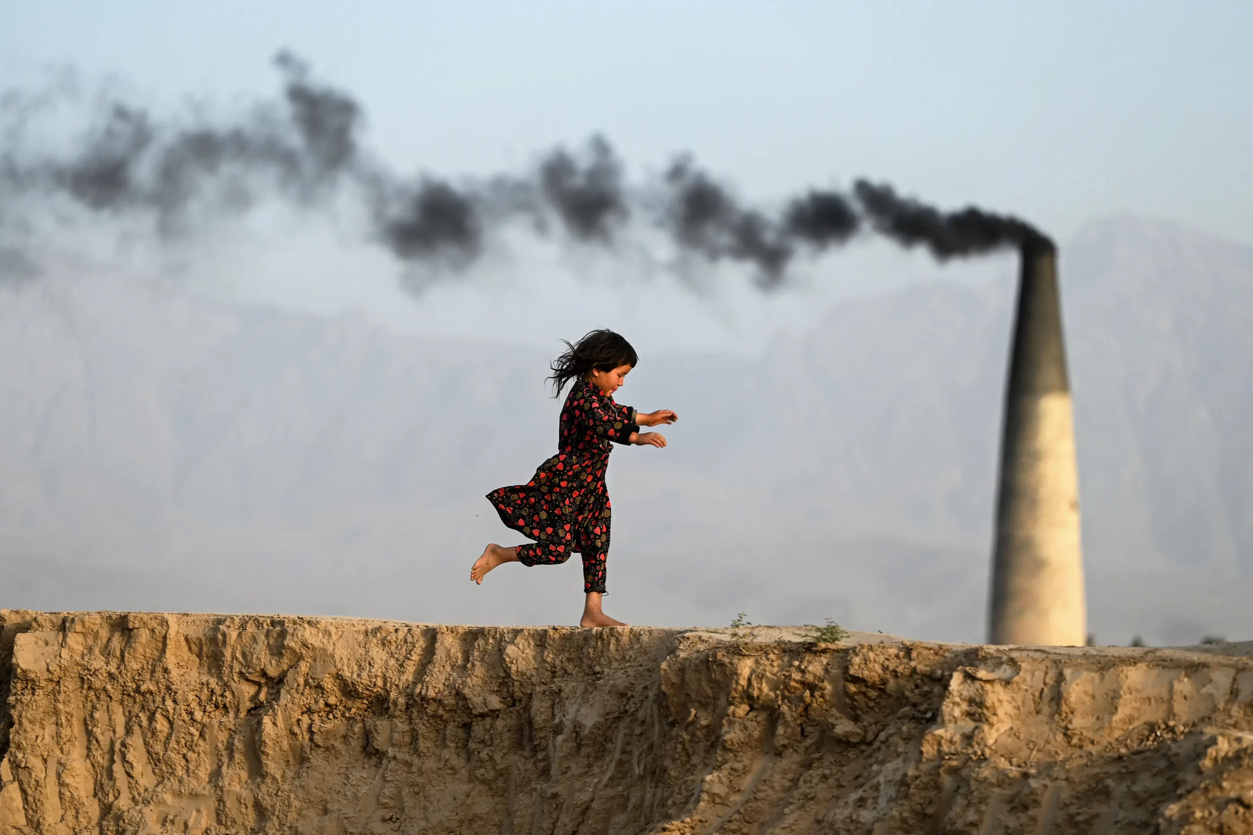 Afghánská dívka běží po cihelně na okraji města Mazár-e Šaríf v Afghánistánu, 22. června 2025. (Wakil Kohsar / AFP via Getty Images)