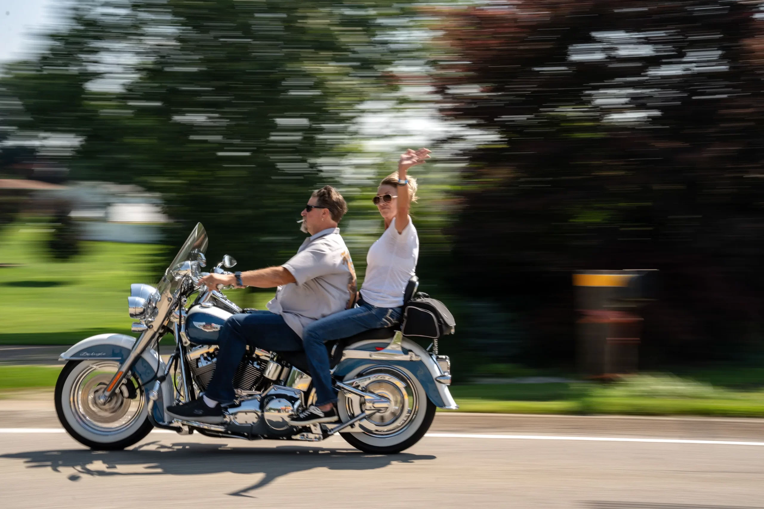 Motorkáři se účastní charitativní jízdy Corey’s Cruise na památku Coreyho Comperatoreho poblíž Butleru v Pensylvánii, 12. července 2025. (Samira Bouaou / The Epoch Times)