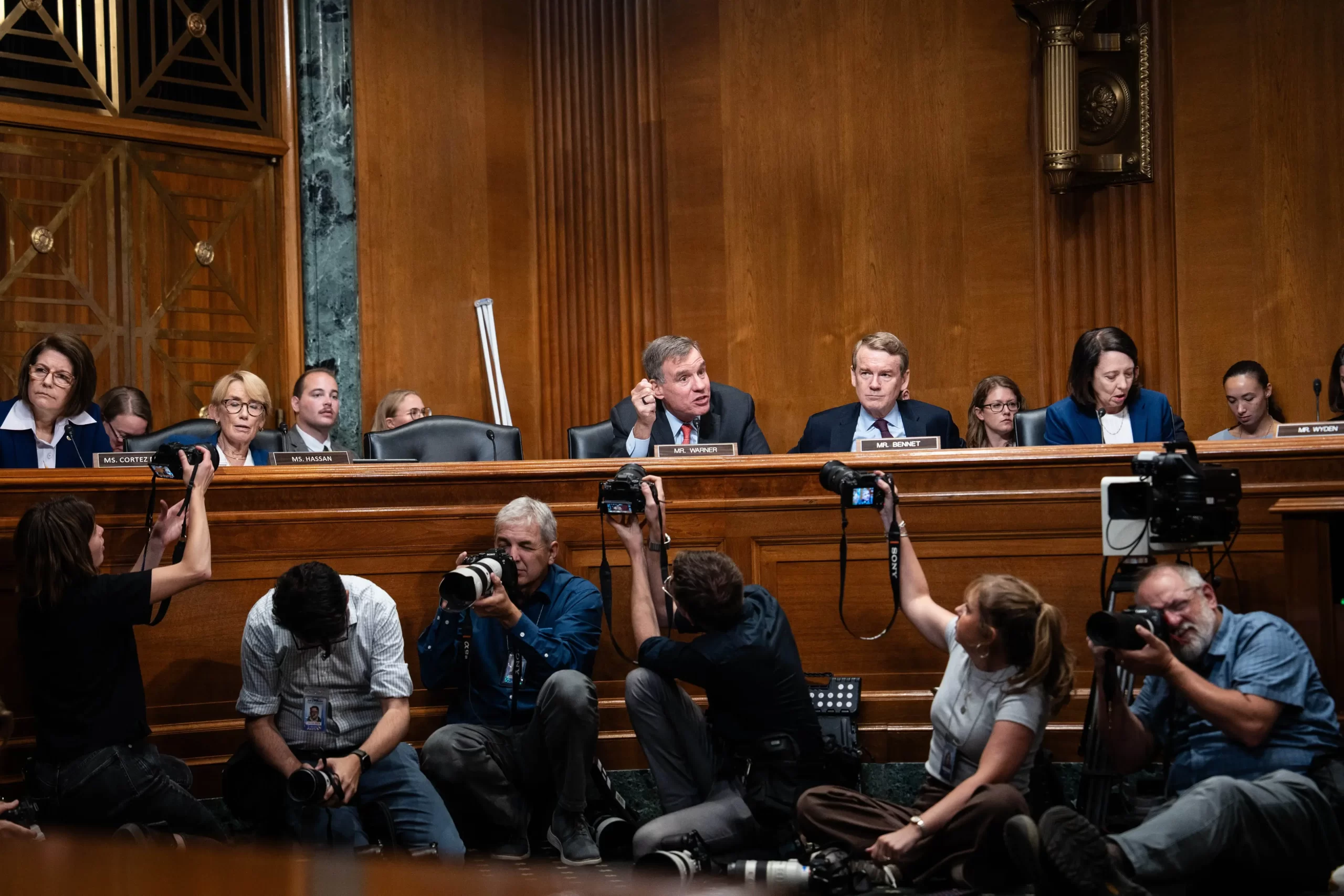 Senátor Mark Warner vystupuje na slyšení Senátního finančního výboru s ministrem zdravotnictví Robertem F. Kennedym mladším, Washington, 4. září 2025. (Madalina Kilroy / The Epoch Times)