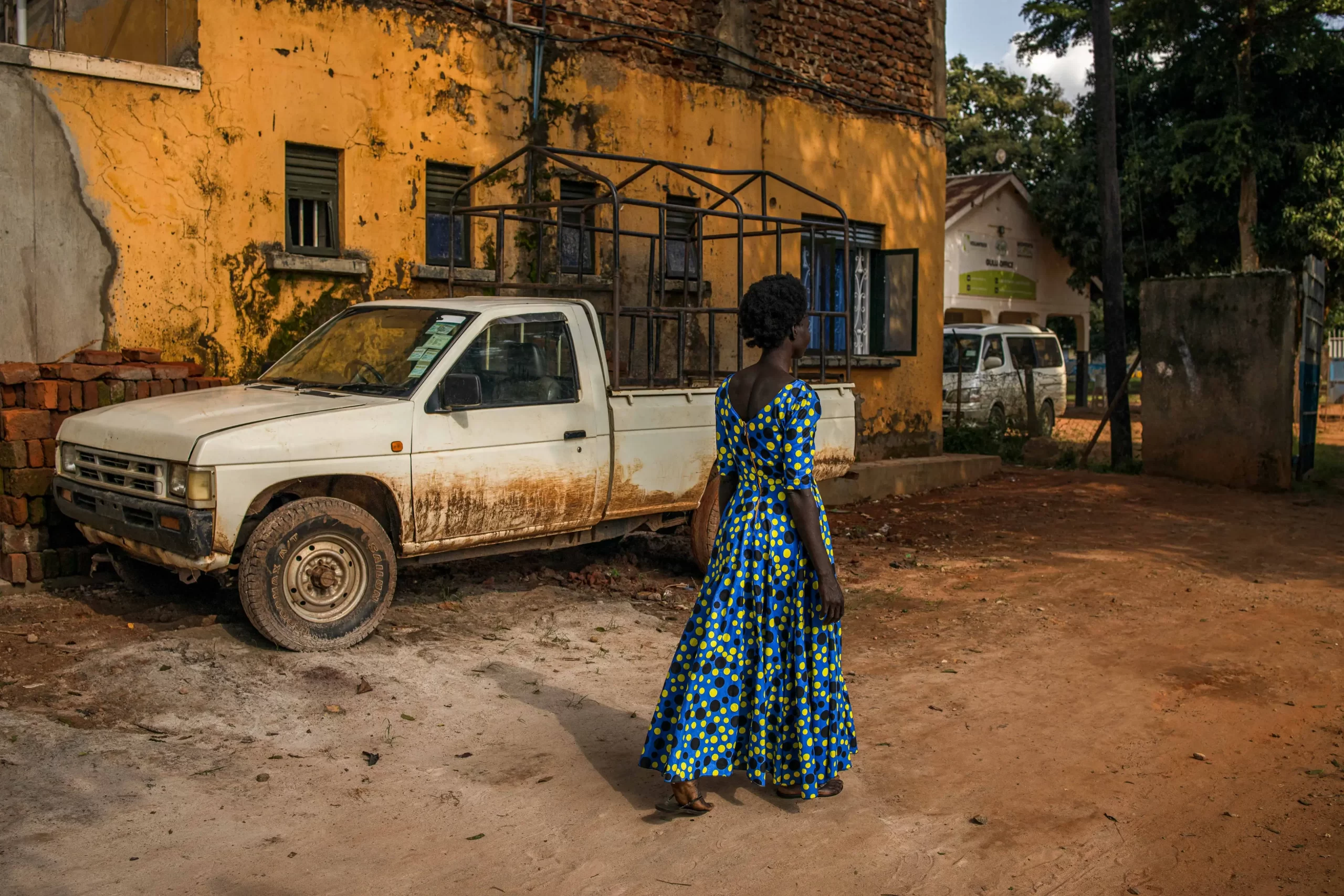 Everlyn Ayo, oběť únosů Armády božího odporu, prochází místem v ugandském Gulu, které jí sloužilo jako úkryt během nočních přesunů, 4. září 2025. (Stuart Tibaweswa / AFP via Getty Images)