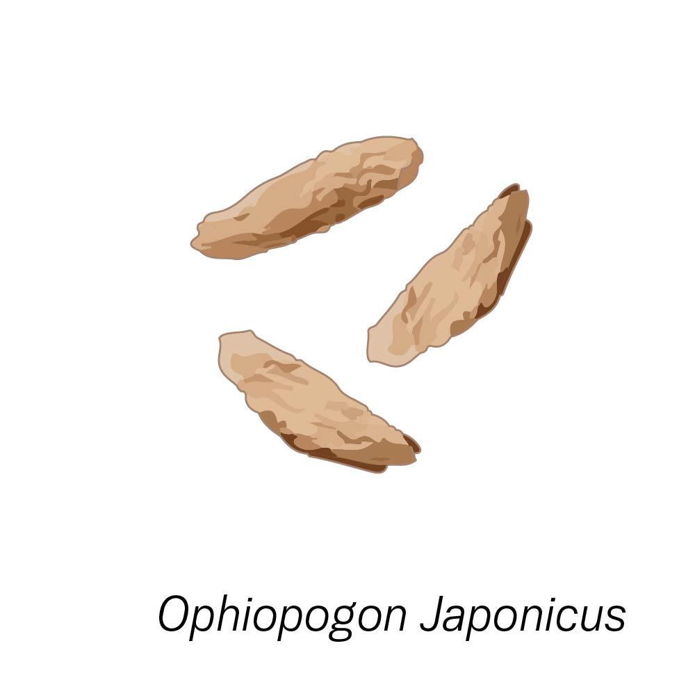- Ophiopogon japonský (Ophiopogon japonicus, Mai Dong): má ochlazující a zklidňující účinky a podporuje tvorbu tělesných tekutin. Výzkumy na potkanech ukazují, že extrakty z této rostliny významně chrání srdeční sval před ischemickým poškozením tím, že zvyšují přirozenou antioxidační kapacitu organismu.
