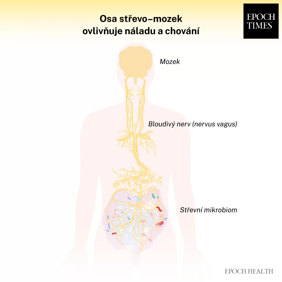 Střeva mají to, čemu vědci říkají „druhý mozek“. Tvoří jej více než 200 milionů neuronů, které prostřednictvím bloudivého nervu (nervus vagus) komunikují s mozkem a vytvářejí tak osu střevo–mozek. Tento systém funguje jako zpětnovazební smyčka, která ovlivňuje naše fyzické i emoční prožívání.