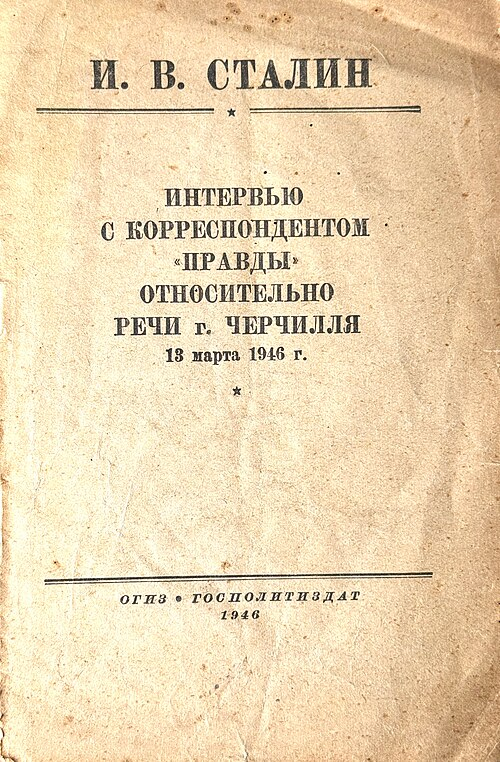Američtí stratégové i britští diplomaté se obávali, že komunistické strany podporované Moskvou by mohly získat vliv také v západní Evropě. Politická atmosféra se proto během roku 1945 a počátkem roku 1946 výrazně proměnila. Vztahy mezi někdejšími spojenci se rychle zhoršovaly a začínal vznikat nový mezinárodní konflikt – budoucí studená válka.