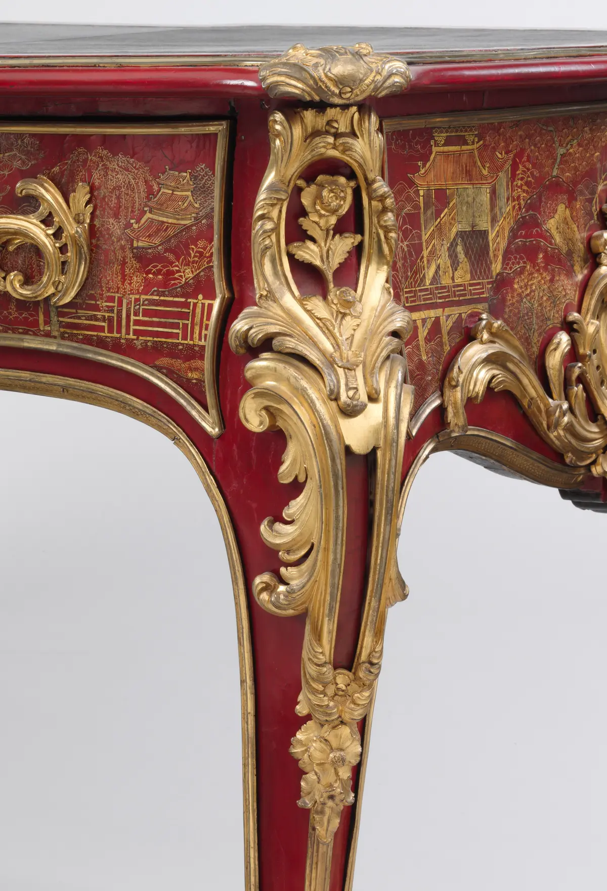 Zářivý karmínový lak a zlaté dekorace, které Joubert na stole použil, evokují asijskou estetiku. Ve Francii byla v polovině 18. století čínsko-červená a zlatá lakovaná výzdoba považována za exotickou a zároveň za vrchol elegance. Francouzští řemeslníci její vzhled napodobovali a používali jej jako dýhu na nábytek.