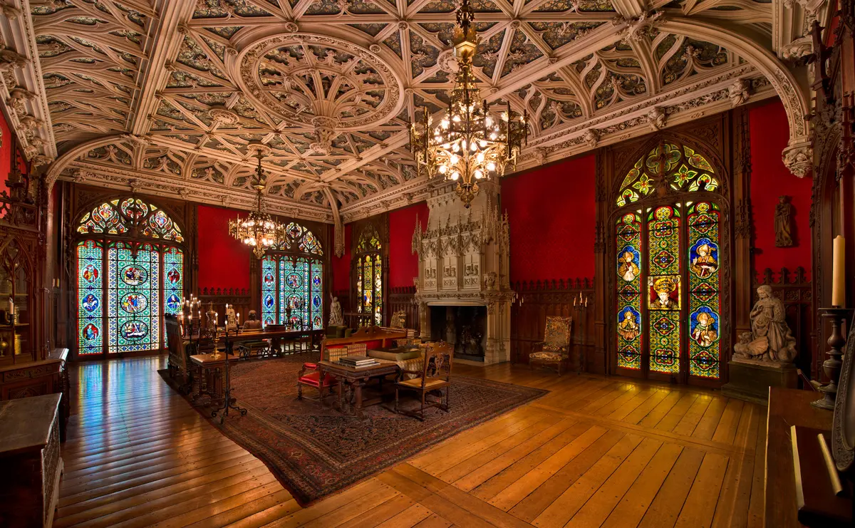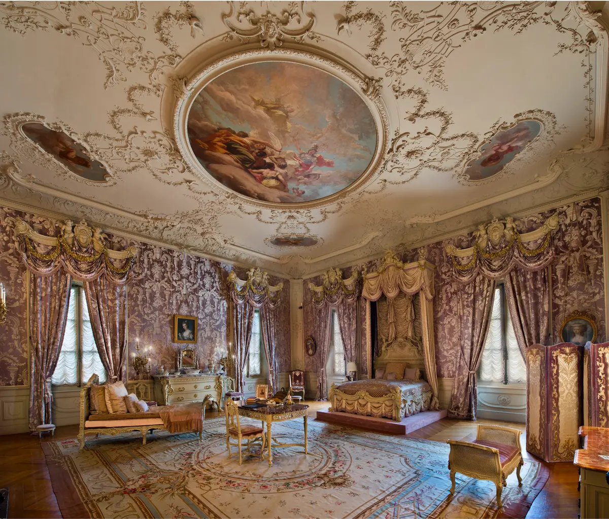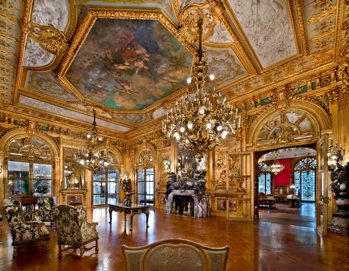 Interiéry byly koncipovány jako dramatická prostředí, včetně oslnivého Zlatého salonu zdobeného 22karátovým zlatem. Francouzské vlivy se prolínají všemi z 50 místností sídla. Patří mezi ně taneční sál inspirovaný Zrcadlovým sálem, dekor ve stylu Ludvíka XVI. ve Williamově soukromé ložnici či reliéfní portrét Julese Hardouina-Mansarta, architekta Versailles. Tyto prvky společně proměňují rezidenci v teatrální přehlídku bohatství a kulturní vytříbenosti.
