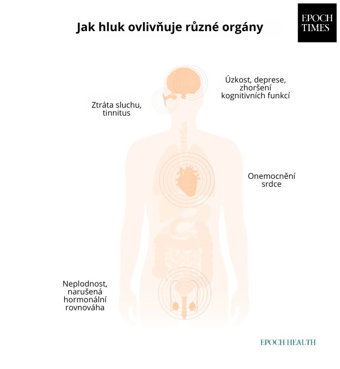 „Dlouhodobé vystavení hluku je spojeno s chronickým stresem a záněty, které dále souvisejí s mnoha zdravotními stavy včetně kardiovaskulárních onemocnění a cukrovky,“ vysvětlila pro Epoch Times Charlie Roscoeová, odborná asistentka v oboru environmentálních systémů a lidského zdraví na Oregonské univerzitě zdraví a vědy.