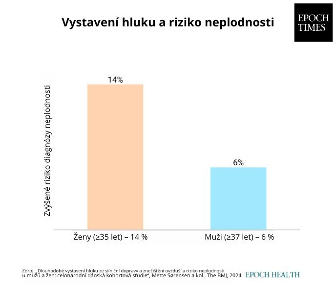Ve studii z roku 2024 vědci zkoumali vliv dlouhodobého vystavení hluku na plodnost. Zjistili, že hluk souvisí s o 14 % vyšším rizikem diagnóity neplodnosti u žen a o 6 % vyšším rizikem u mužů.
