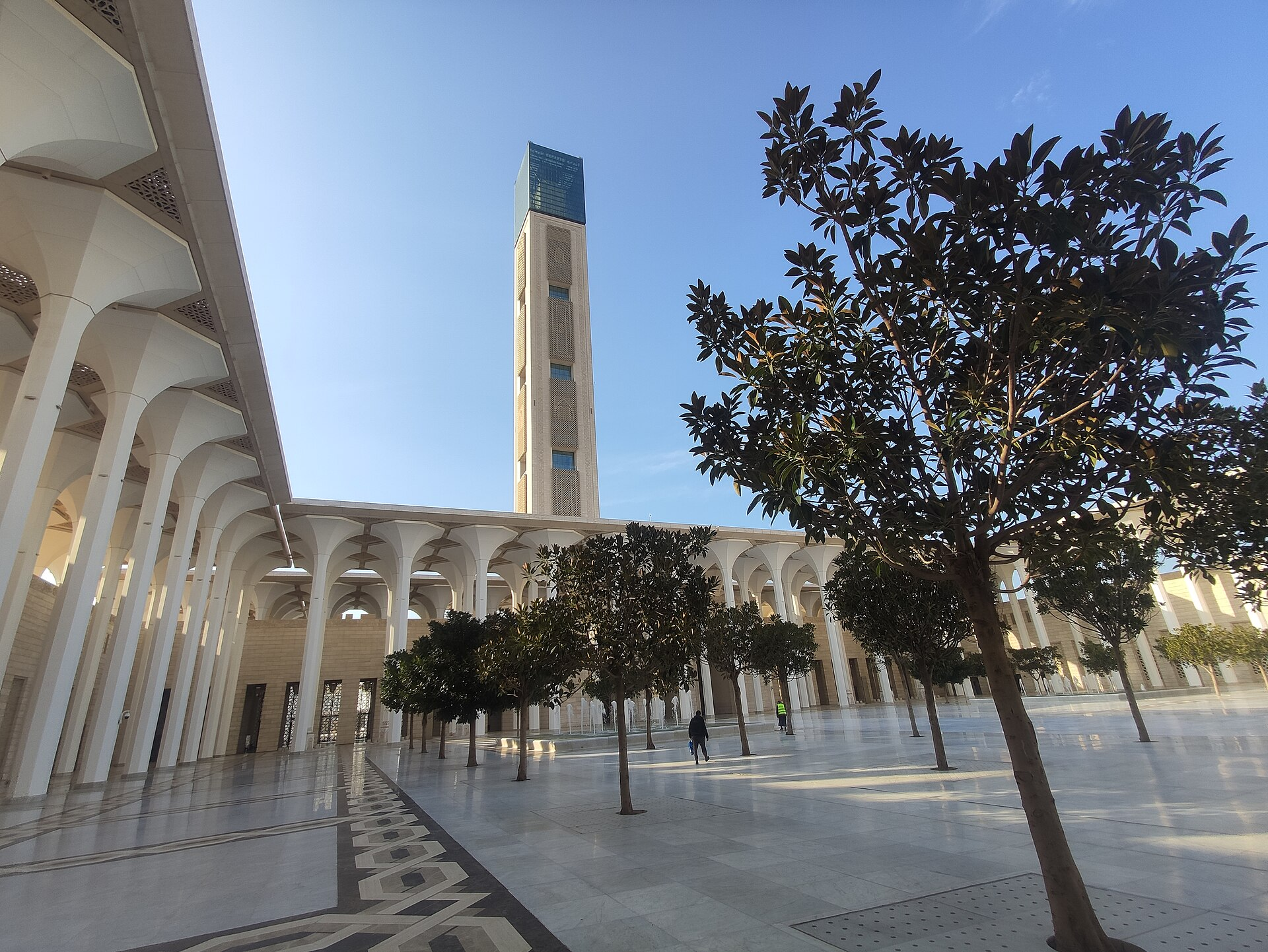 Moderní mešita a její obrovský minaret. (Rachid Hamatou / Vlastní dílo, CC BY-SA 4.0)