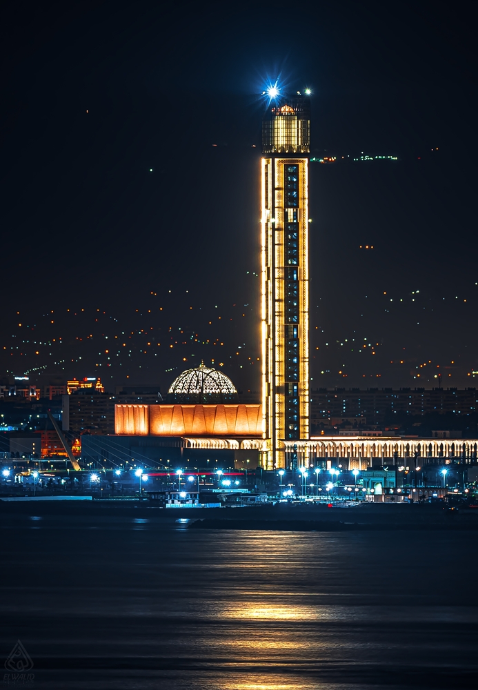 V noci minaret alžírské mešity svítí jako maják. (WalidLombre / Shutterstock)