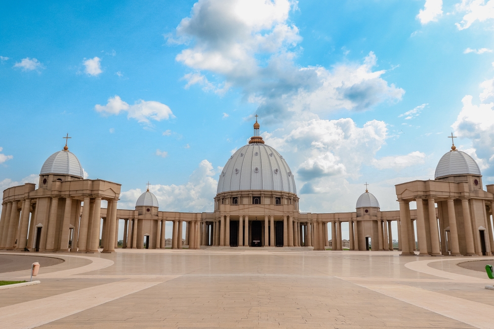 Na pobřeží Afriky, ve městě Yamoussoukro, stojí stavba, která kdysi ohromila svět svou monumentalitou i cenou. Bazilika Panny Marie Královny míru dosahuje výšky 158 metrů k vrcholu kříže na kupoli. Byla postavena v letech 1985 až 1989 na popud prvního prezidenta země, Félixe Houphouët-Boignyho, v jeho rodném městě. Guinnessova kniha rekordů ji uvádí jako největší kostel světa, neboť svou rozlohou překonává i baziliku svatého Petra ve Vatikánu, i když je její vnitřní kapacita nižší.