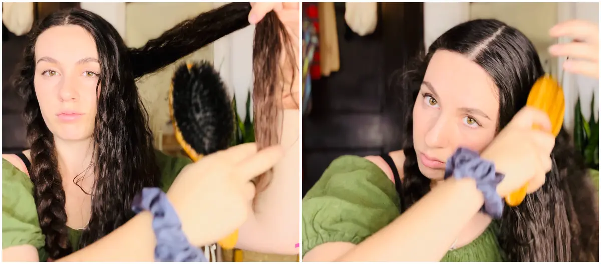 „Místo toho se naučily pečovat o své vlasy, když byly suché, pomocí méně náročných metod, jako je například každodenní večerní vyčesávání vlasů štětinovým kartáčem, který velmi dobře čistí vlasy od prachu a nečistot a také odvádí oleje.“